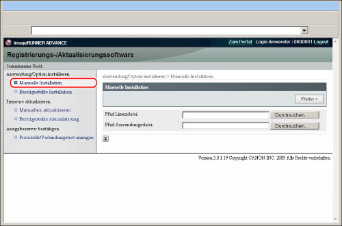 Sie müssen sich als Administrator bei diesem System anmelden, um das in diesem Abschnitt beschriebene Verfahren durchzuführen. (Vgl. Abschnitt "Einloggen in das System als Administrator".)