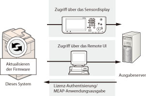 Mit der Funktion "Software speichern/aktualisieren" können Sie die Firmware des Systems auf den neuesten Versionsstand aktualisieren. Sie können diese Funktion über das Sensordisplay oder über den Computer (Remote UI) ausführen.