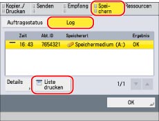 Wenn das Access Management System Kit-B1 installiert und aktiviert ist, wenn ein angemeldeter, allgemeiner Anwender einen Speicherlogbericht druckt, werden für die Aufträge, die von anderen Anwendern ausgeführt wurden, "***" in die Spalte Speichern unter gedruckt. Melden Sie sich als Administrator an, um die Informationen in der Spalte Speichern unter zu sehen.