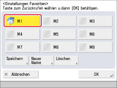 Berühren Sie nacheinander die Tasten [Optionen] → [Einstellungen Favoriten].