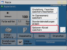 Berühren Sie die Taste [Optionen-Kürzel speichern].