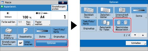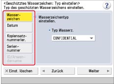 Berühren Sie nacheinander die Tasten [Optionen] → [Geschütztes Wasserzeich.].