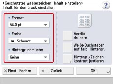 Definieren Sie die Druckeinstellungen für das Wasserzeichen.