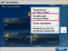 Wählen Sie die Taste, für die Sie das Hintergrundbild einstellen möchten → Wählen Sie die Einstellungen für das Hintergrundbild → Bestätigen Sie durch Berühren der Taste [OK].