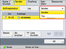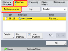 Berühren Sie nacheinander die Tasten [Senden] → [Auftragsstatus].