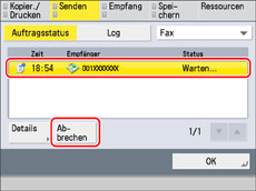 Wählen Sie den Auftrag, den Sie abbrechen möchten → Berühren Sie die Taste [Abbrechen].