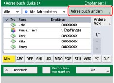 [Adressbuch ändern] wird nur angezeigt, wenn Sie sowohl das Remote-Adressbuch als auch den LDAP Server speichern. Wenn nur der LDAP Server auf dem System gespeichert wird, wird [An LDAP-Server] angezeigt.