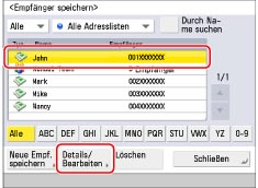 Wählen Sie den zu ändernden Empfänger → Berühren Sie die Taste [Details/Bearbeiten].