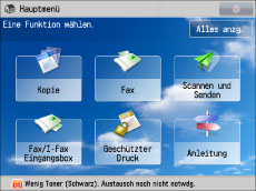 Durch Berühren der Taste [Schließen] können Sie weiterhin Einstellungen zu Funktionen programmieren oder Originale scannen, auch wenn Sie die Tonerpatrone nicht sofort ersetzen.
