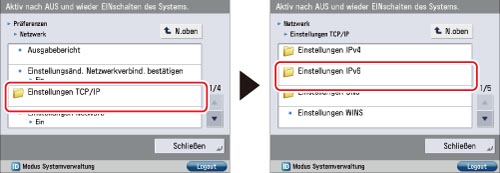 Berühren Sie [Einstellungen TCP/IP] → [Einstellungen IPv6].