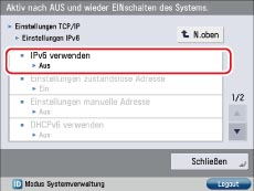 Berühren Sie [Aus] für <IPv6 verwenden>, wenn Sie die IPv6-Kommunikation nicht verwenden möchten.