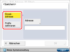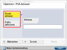 So definieren Sie eine einzelne IPv6-Adresse: Berühren Sie [Einzeladresse] → [Adresse]. Geben Sie eine IPv6-Adresse ein → Berühren Sie [OK].