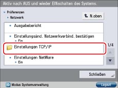 Berühren Sie [N.oben] → [N.oben] → [Einstellungen TCP/IP].