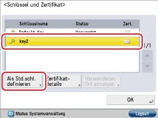 Wählen Sie das Schlüsselpaar aus, das Sie für mit SSL verschlüsselte Kommunikation verwenden möchten → Berühren Sie [Als Std.schl. einstellen].