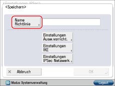 Berühren Sie [Aus] für <IPSec verwenden>, wenn Sie IPSec nicht verwenden möchten.