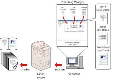 Publishing Manager ermöglicht Ihnen die effiziente Erstellung von Dokumenten durch die optimale Nutzung der Funktionen von Canon-Systemen.