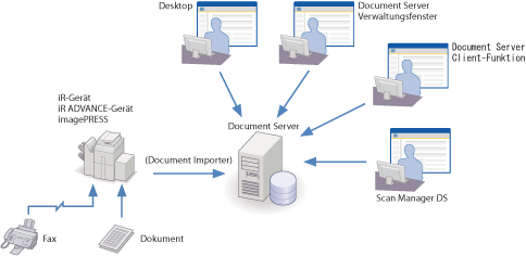 Document Server ist ein Server für die Dokumentenverwaltung, der Document Server Client Function oder Desktop als Client verwendet. Neben der Dokumenterstellung mit diesen Clients ist Document Server in der Lage, Dokumente, die mit Multifunktionsgeräten der Serie iR oder Dokumentenscannern der Serie DR gescannt wurden, über das Netzwerk zu speichern. Dies ermöglicht den Aufbau eines funktionalen Systems für eine effiziente Verwaltung gespeicherter Dokumente.