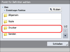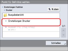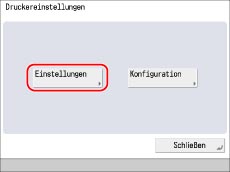 Berühren Sie [Einstellungen Funktion] → [Drucker] → [Einstellungen Drucker].