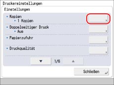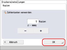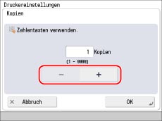 Legen Sie die Anzahl der Drucke durch Berühren der Taste [-] oder [+] fest.