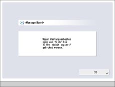 Nach dem Lesen der Nachricht wird das Message Board durch Berühren von [OK] geschlossen. Anschließend kann die Arbeit mit dem System normal fortgesetzt werden.