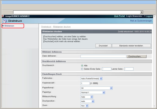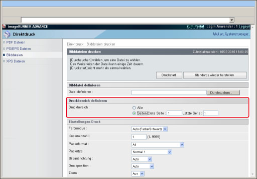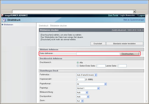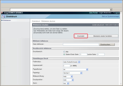 Klicken Sie nicht wiederholt auf [Druckstart], wenn eine Datei weitergeleitet wird. Das Weiterleiten kann ein wenig Zeit in Anspruch nehmen. Wenn Sie jedoch während des Weiterleitungsvorgangs mehrfach klicken, kommt es möglicherweise zu einer Fehlfunktion und die Datei wird nicht weitergeleitet.
