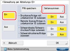 , um die gewünschte Abteilungs ID aufzurufen → Sehen Sie sich die Seitensummen zu dieser ID an. Berühren Sie die Taste