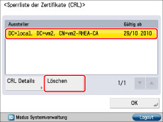 Wählen Sie die Sperrliste der Zertifikate → Berühren Sie die Taste [Löschen].