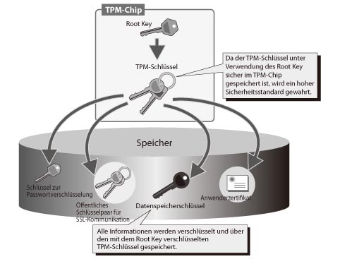 Passwörter und im Speicher verwaltete Zertifikatsinformationen können auch mit der Funktion TPM-Einstellungen verschlüsselt werden.