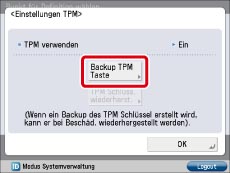 Das von TPM bereitgestellte Maß an Sicherheit garantiert keinen kompletten Schutz der Daten und der Hardware. Bitte beachten Sie, dass Canon keine Haftung für Schäden übernimmt, die durch die Verwendung dieser Funktion entstehen.