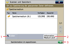 Durch Berühren dieser Taste können Sie Detailinformationen zum Speichermedium abrufen.