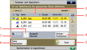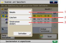 Nähere Informationen zur Einrichtung von Ordnern, Überprüfung von Detailinformationen zur Datei und Bearbeitung/Löschung von Dateien finden Sie im Abschnitt "Zugang zu gespeicherten Dateien".