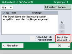 Wenn Sie die Taste [Suche starten] ohne Eingabe von Suchkriterien berührt haben, werden alle auf dem LDAP-Server gespeicherten Adressen angezeigt.