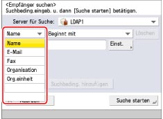 Organisation und Organisationseinheit können nur als Suchkategorien verwendet werden, wenn die nötigen Informationen auf dem LDAP-Server gespeichert sind.