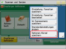 Betätigen Sie die Taste [Optionen-Kürzel speichern].
