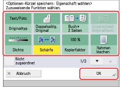 Wählen Sie die Funktion aus [Optionen], die Sie der Taste zuordnen möchten → Bestätigen Sie durch Berühren der Taste [OK].