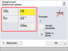 Sie können das Dateiformat festlegen, dass beim Scannen von Originalen verwendet werden soll.