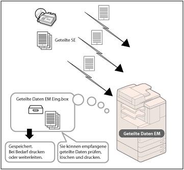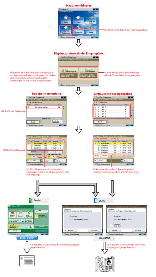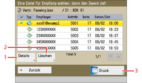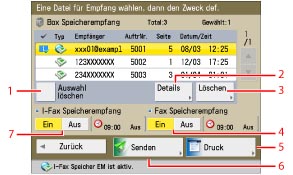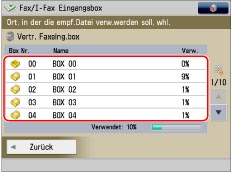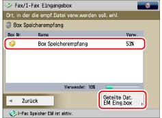 Wir empfehlen, nicht benötigte Dateien und Bilddaten aus der Fax-/I-Fax Eingangsbox zu löschen, damit Platz für die Speicherung weiterer Dateien verfügbar wird.