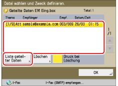 Betätigen Sie die Taste [Geteilte Dat. EM Eing.box].