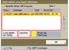 Geteilte Daten werden während des Empfangs vom System gelöscht. Sie können das System auch so einrichten, dass die gelöschte Datei gedruckt wird.