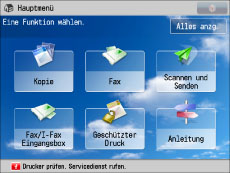Wenn die Zielfunktion aufgrund eines Fehlers eingeschränkt ist, steht die Funktion nicht zur Verfügung, wenn Sie die Kurzwahltaste auf der linken Seite des Sensordisplays oder das Expressmenü verwenden.