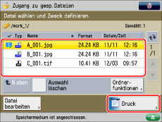 Sie müssen <Scan/Druckfunktion verwenden> in [Druckfunktion verwenden] aktivieren, um eine Datei auf Speichermedien zu drucken. (Vgl. Abschnitt "Einstellungen für Speichermedien".)