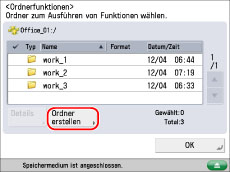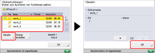 Wählen Sie den gewünschten Ordner → Berühren Sie die Taste [Details] → Bestätigen Sie durch Berühren der Taste [OK].