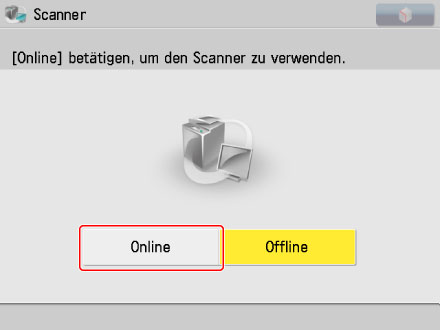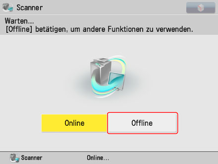 Berühren Sie die Taste [Offline] auf dem Display [Scanner].