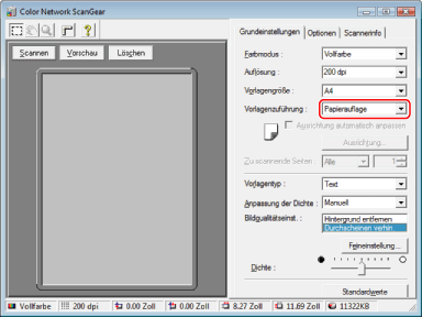 Wählen Sie [Papierauflage] unter [Vorlagenzuführung].