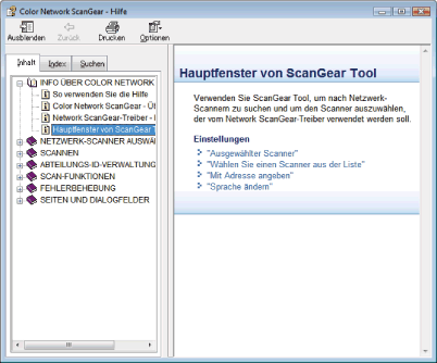 Klicken Sie auf [Inhalt] / [Index] / [Suchen], um nach genaueren Informationen zu suchen.