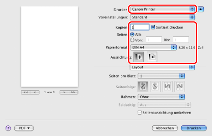 Nähere Informationen zu den verfügbaren Druckfunktionen finden Sie unter "Druckfunktionen" oder in der Online-Hilfe. (vgl. "Anzeigen der Online-Hilfe").