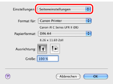 Je nach verwendeter Anwendung wird das Dialogfenster [Papierformat] unter Mac OS X 10.5 oder höher möglicherweise nicht angezeigt.