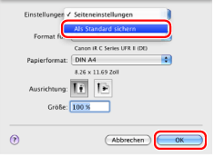 Wählen Sie unter [Einstellungen] die Option [Als Standard sichern] aus → Klicken Sie auf [OK].