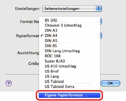 Wählen Sie [Eigene Papierformate] unter [Papierformat].