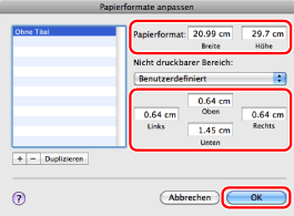 Wenn das gewünschte Papierformat nicht unter [Papierformat] angezeigt wird, können Sie es neu anlegen.